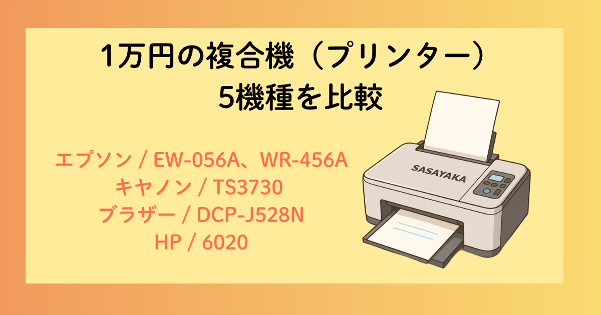 今回は1万円前後で購入できて、印刷、コピー、スキャンの基本的な機能がある複合機(プリンター)について比較をしました。