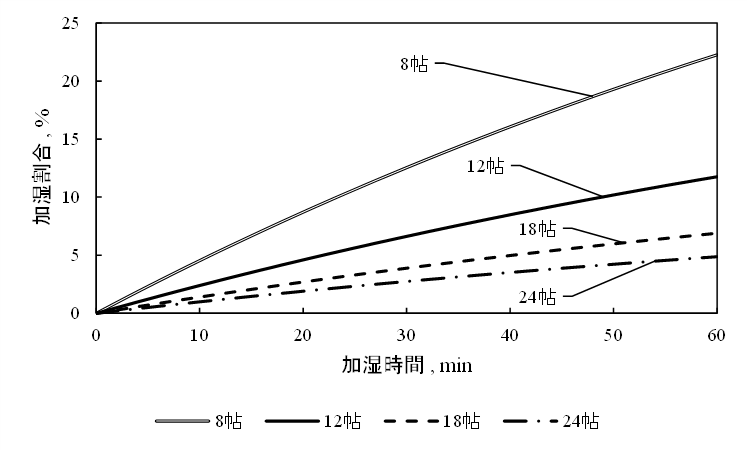 計測した加湿量を基に表計算ソフトを使用して簡易的に机上計算をしました。素人計算なので、あくまで参考としてご覧ください。